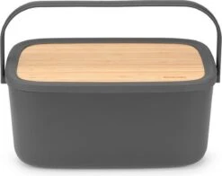 Brabantia Nic Broodtrommel – Met Bamboe Deksel – Dark Grey