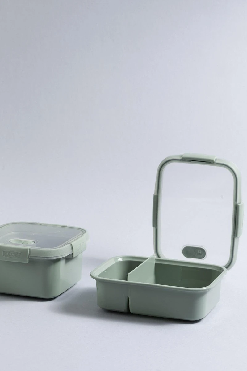 De Curver Smart to Go Eco Lunchset is een mobiele oplossing voor het meenemen van voedingsmiddelen. Ideaal voor een lunch buiten de deur. De lijn bestaat uit diverse oplossingen geschikt voor snacks, sandwiches, soep, saus of een complete lunch. De uitstraling is trendy en de lijn is beschikbaar in de frisse kleur groen. De producten zijn 100% lucht- en waterdicht dankzij een beveiligde sluiting met geintegreerde seal. Dankzij een slim ventiel zijn ze ook uitermate geschikt voor het opwarmen van voedsel in de magnetron. Enkele varianten beschikken over bestek en sauscups en/of een compartiment.