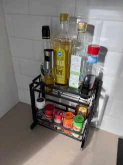Merkloos Inklapbaar Kruidenrek – 2-laags Keukenrek – Aanrecht Organizer – Kruiden Etàgere – Staand Keukenrek