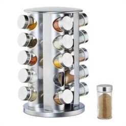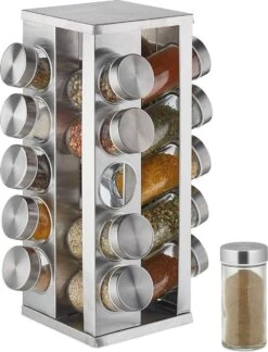 Pazzo Goods – Kruidenrek Staand – Kruidenrek Met Potjes – Zilver – RVS – Kruidenrek Draaibaar – 20 Kruidenpotjes – Inclusief Stickers & Stift – Kruiden Carrousel