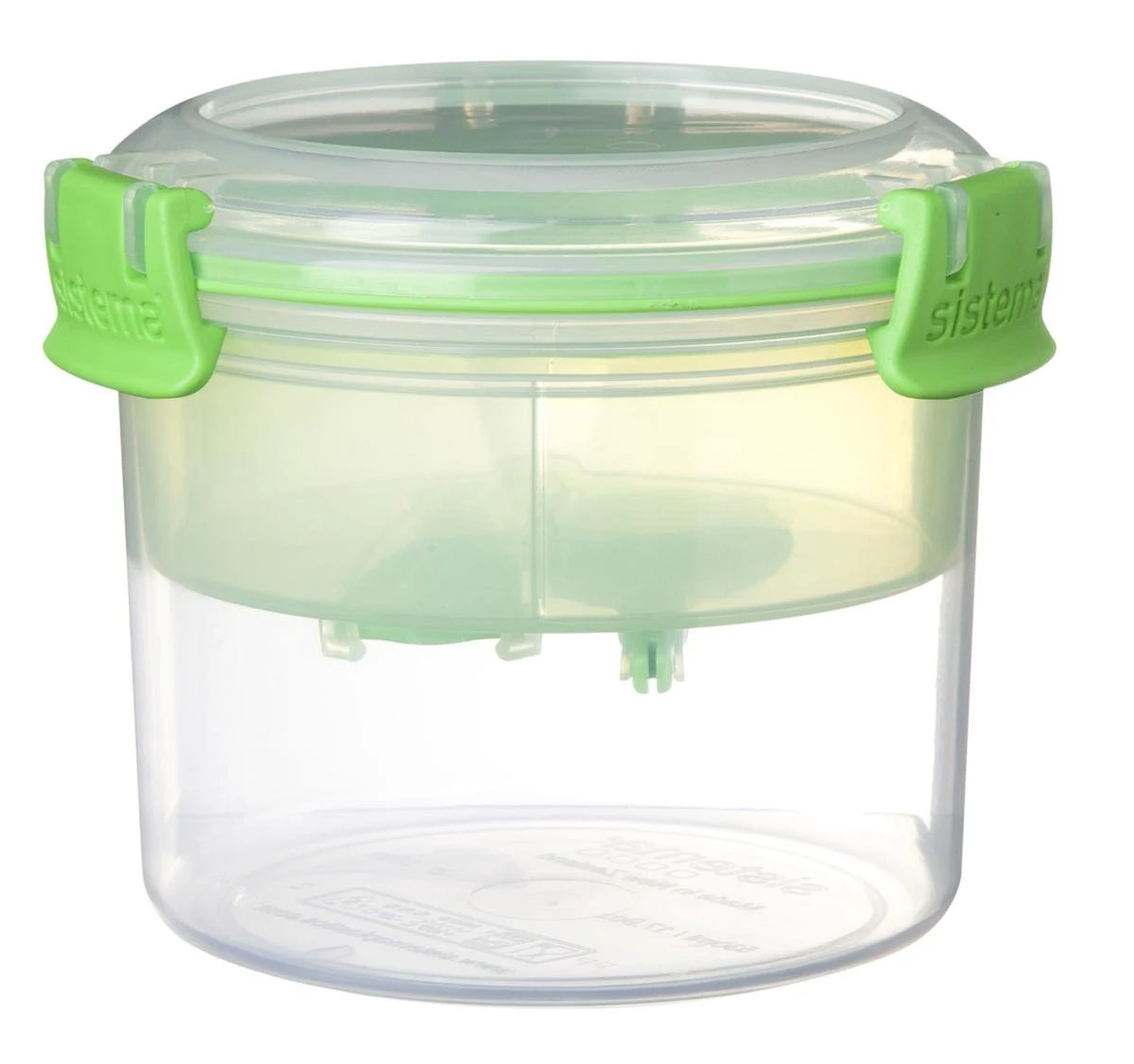 Deze Sistema To Go Ontbijtkom is ideaal voor de haastige ontbijter. Geen tijd om thuis te ontbijten of een tussendoortje mee te nemen naar school of het werk? Deze bewaardoos van Sistema zorgt ervoor dat je je ontbijtgranen, yoghurt en fruit kunt bewaren in aparte schoteltjes. Zo blijven je ontbijtgranen lekker knapperig. Er wordt ook een lepel in het schoteltje bijgeleverd. Dit product is microgolf-en vaatwasbestendig en heeft een inhoud van 530 ml.